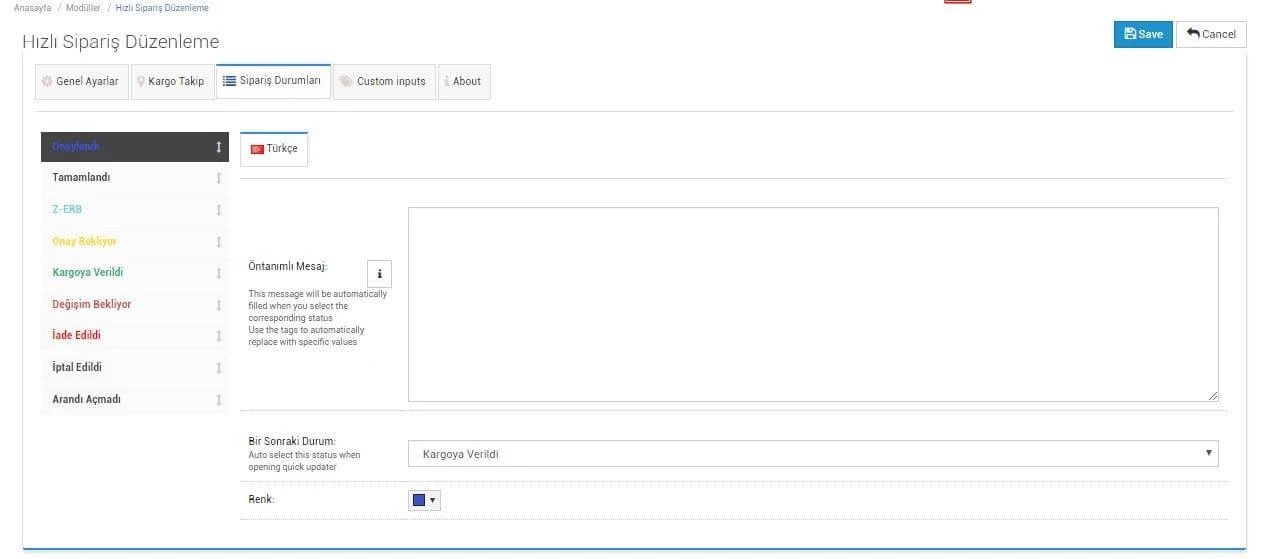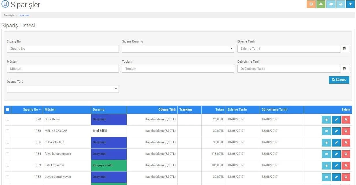 Gelişmiş Sipariş Yönetimi Kullanımı