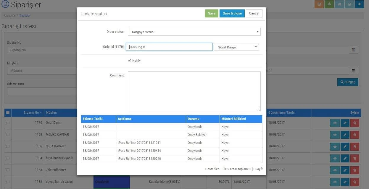 Gelişmiş Sipariş Yönetimi Özellikleri