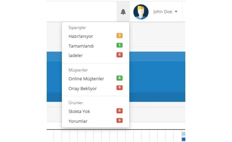 - Stokta Olmayan Ürünler: Stokta olmayan ürünleriniz hakkında bildirim alırsınız. Bu sayede, hangi ürünlerin stoğu tükenmiş olduğunu kolayca görüp, stoklarınızı zamanında güncelleyebilirsiniz.