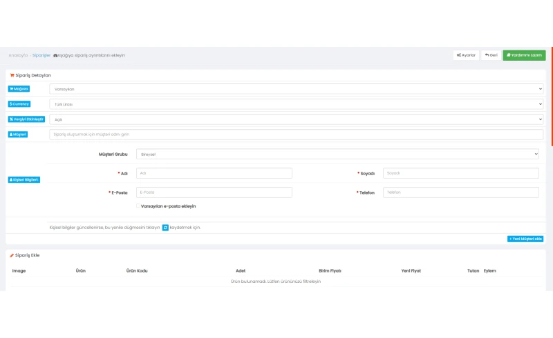 Mağaza yöneticisine sorunsuz bir şekilde sipariş oluşturma gücü vermek için farklı gerekli araçlar sağladık. Aşağıdaki özellikleri kontrol edin: