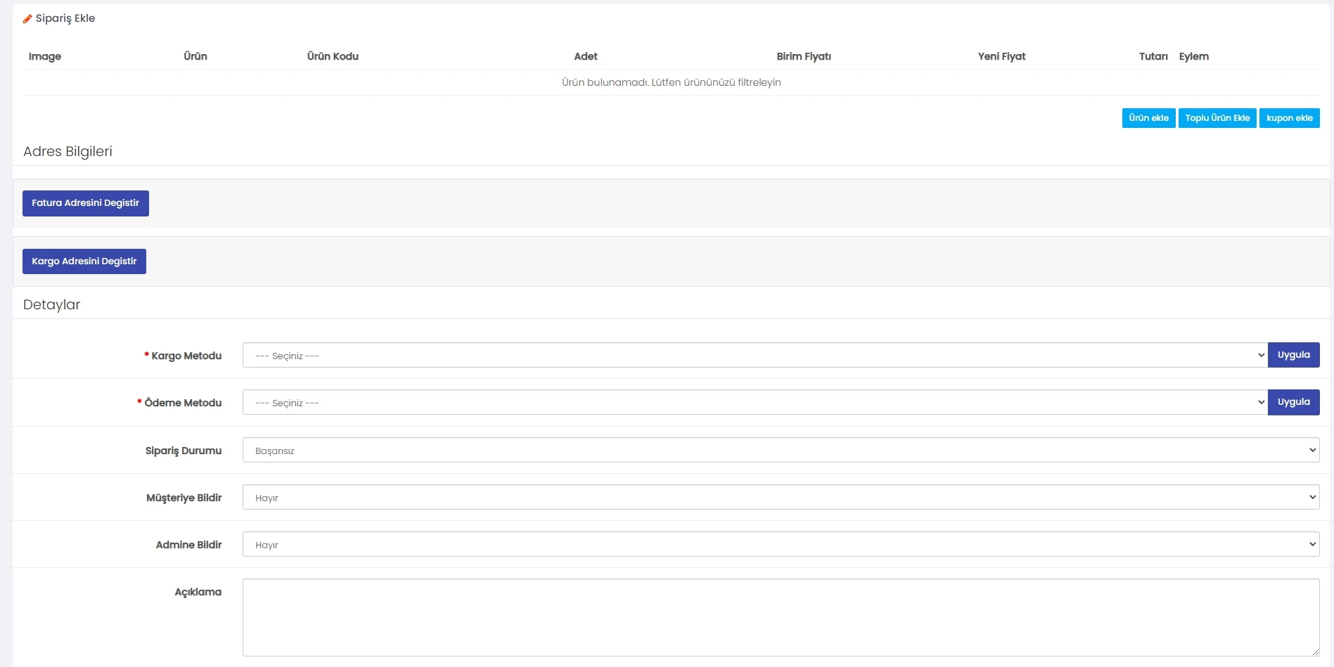 Ayrıca, siparişe ekstra ücretler, indirimler ve özel gönderim/ödeme de ekleyebilirsiniz.