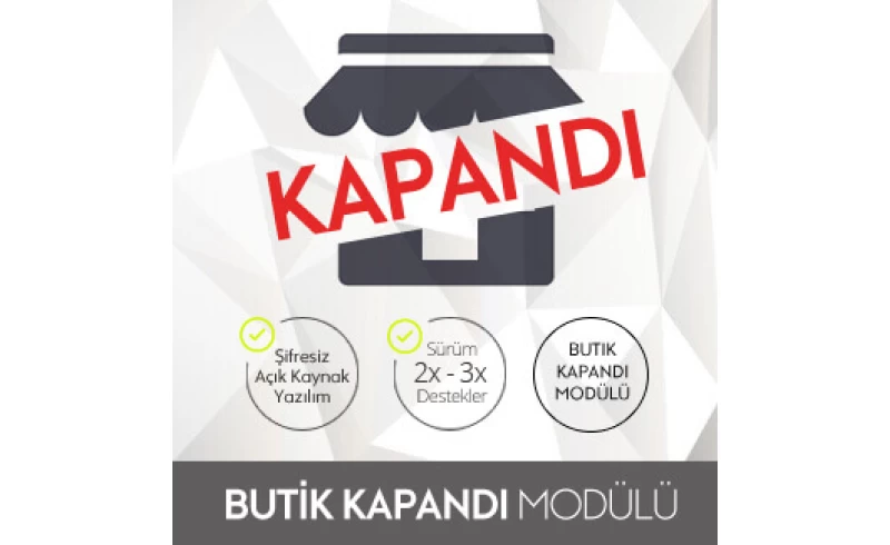 Opencart Butik Kapandı Modülü, OpenCart Eticaret Paketleri listesinde yer almaktadır.